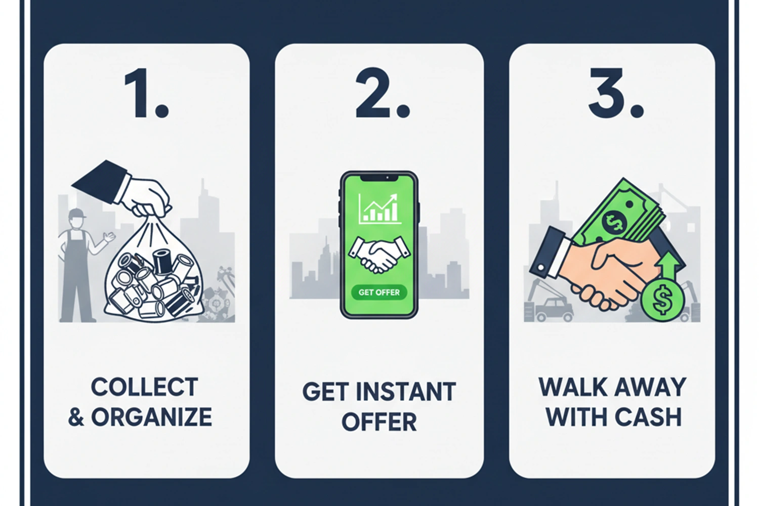 Our goal is to make selling scrap simple — we come to your location, pick up your materials, and pay instant cash on the spot.